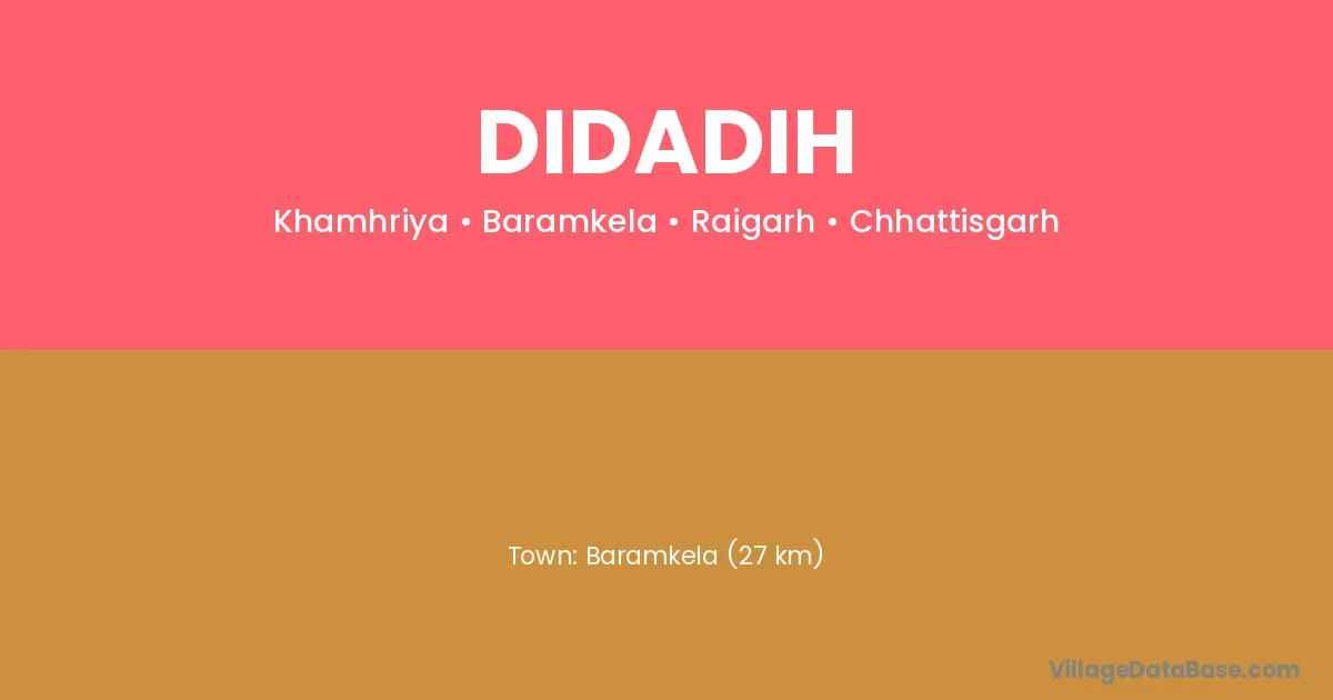 Baramkela (27 km) is the nearest town to Didadih village for major economic activities and is located approximately 27 km away.