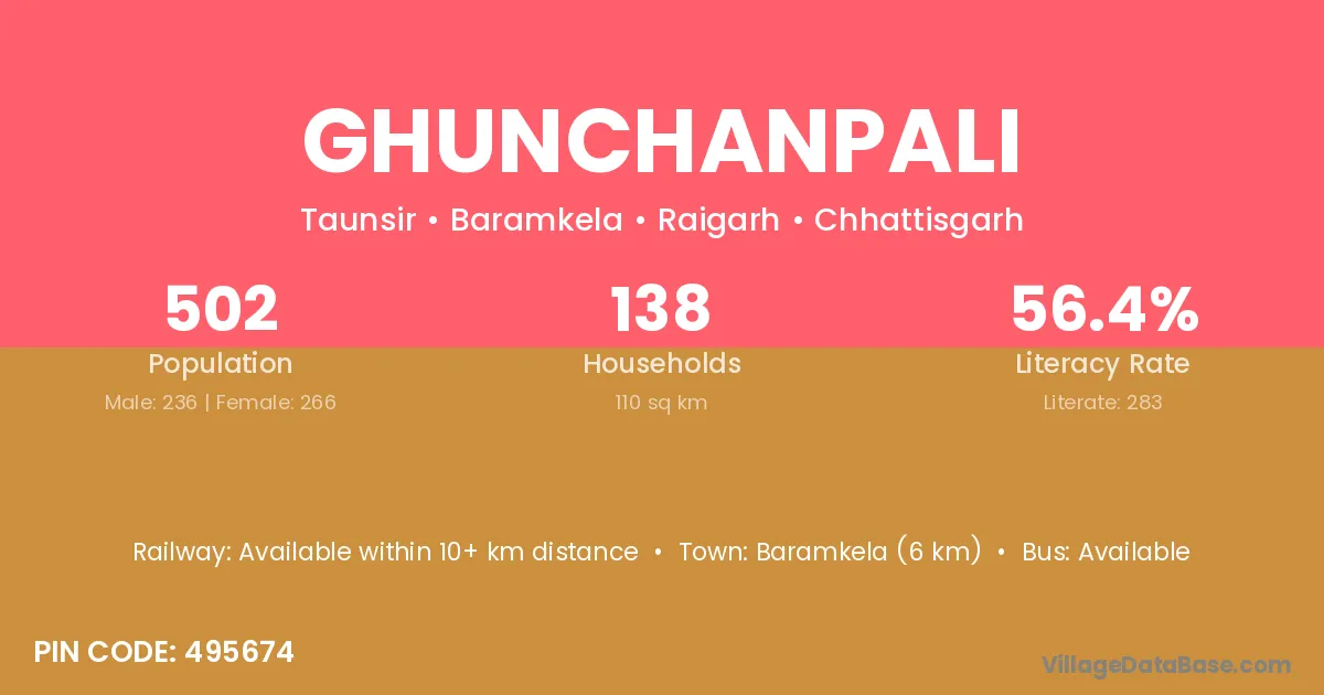 Ghunchanpali village has a total population of 502 people, of which 236 are males and 266 are females.