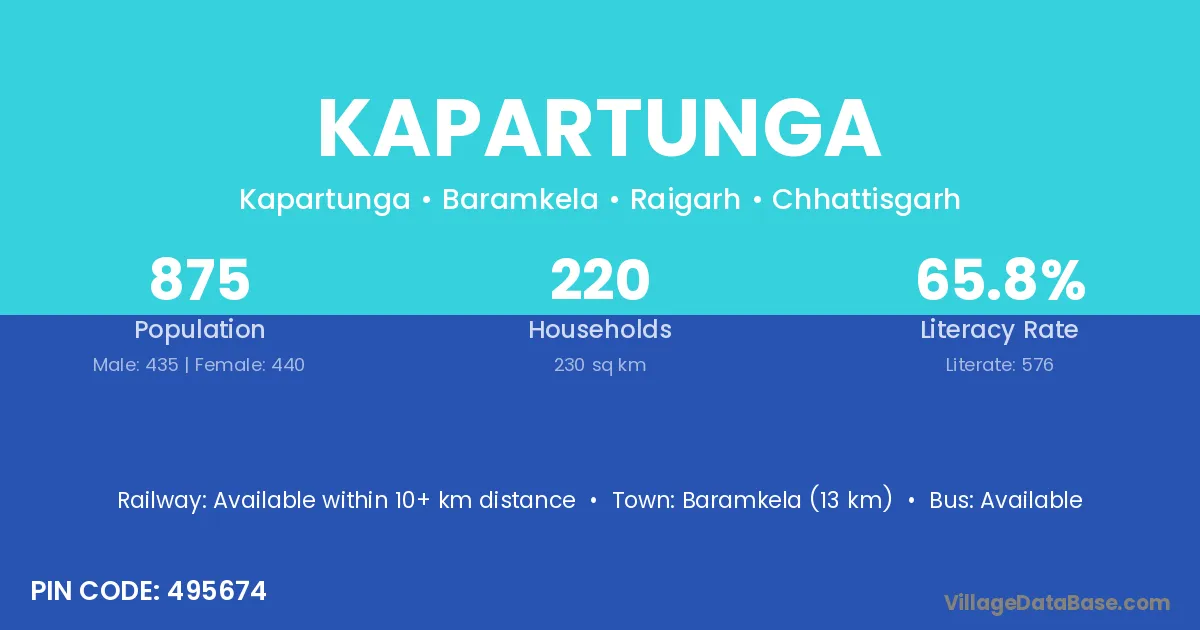 Kapartunga village has a total population of 875 people, of which 435 are males and 440 are females.