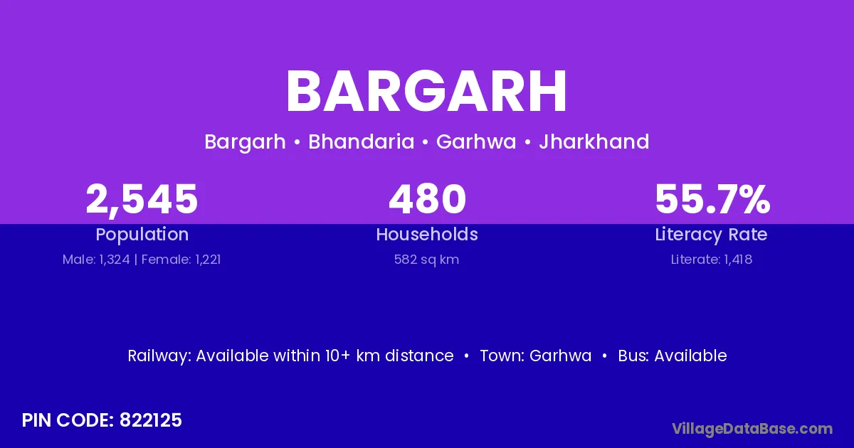 Kharsia (19 km) is the nearest town to Bargarh village for major economic activities and is located approximately 19 km away.