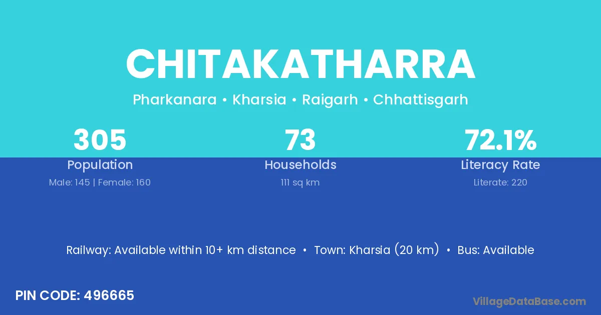 Kharsia (20 km) is the nearest town to Chitakatharra village for major economic activities and is located approximately 20 km away.