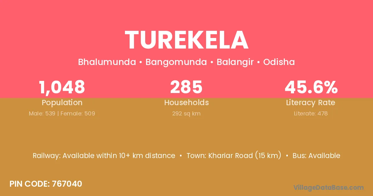 Kharsia (7 km) is the nearest town to Turekela village for major economic activities and is located approximately 7 km away.