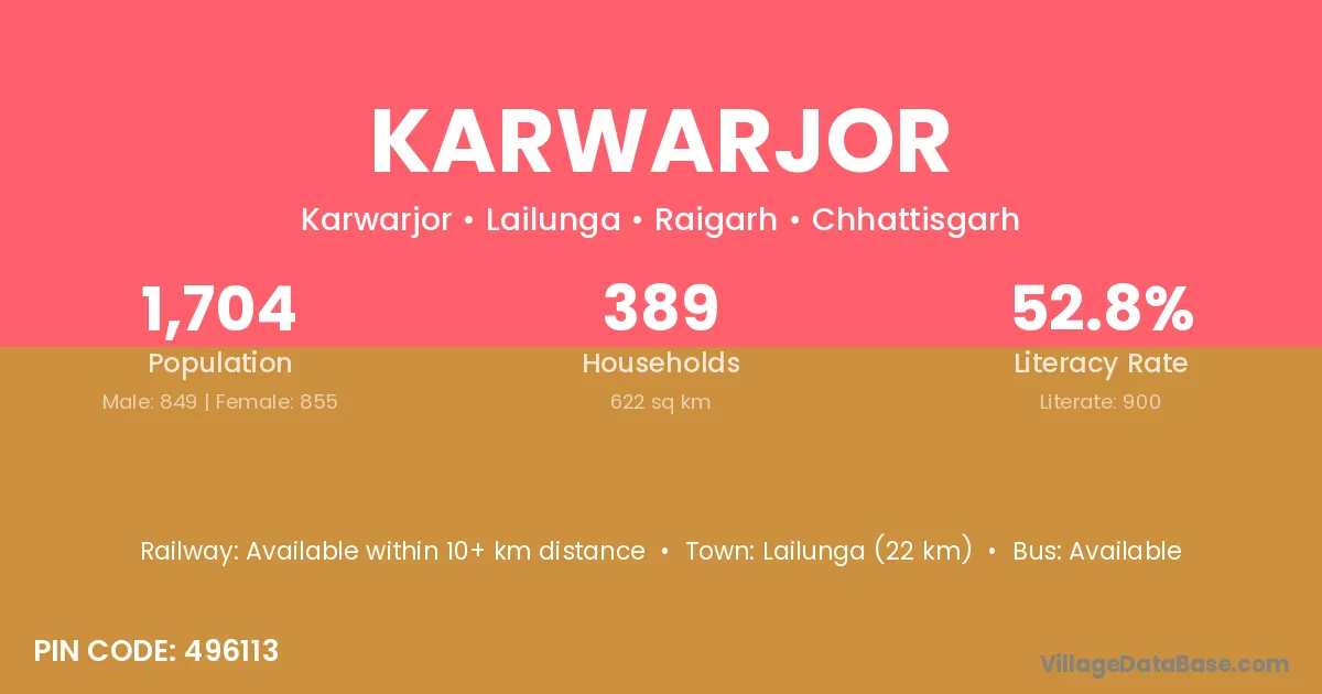 Lailunga (22 km) is the nearest town to Karwarjor village for major economic activities and is located approximately 22 km away.