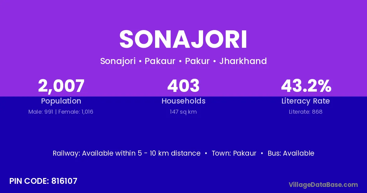 Sonajori village has a total population of 2,831 people, of which 1,393 are males and 1,438 are females.