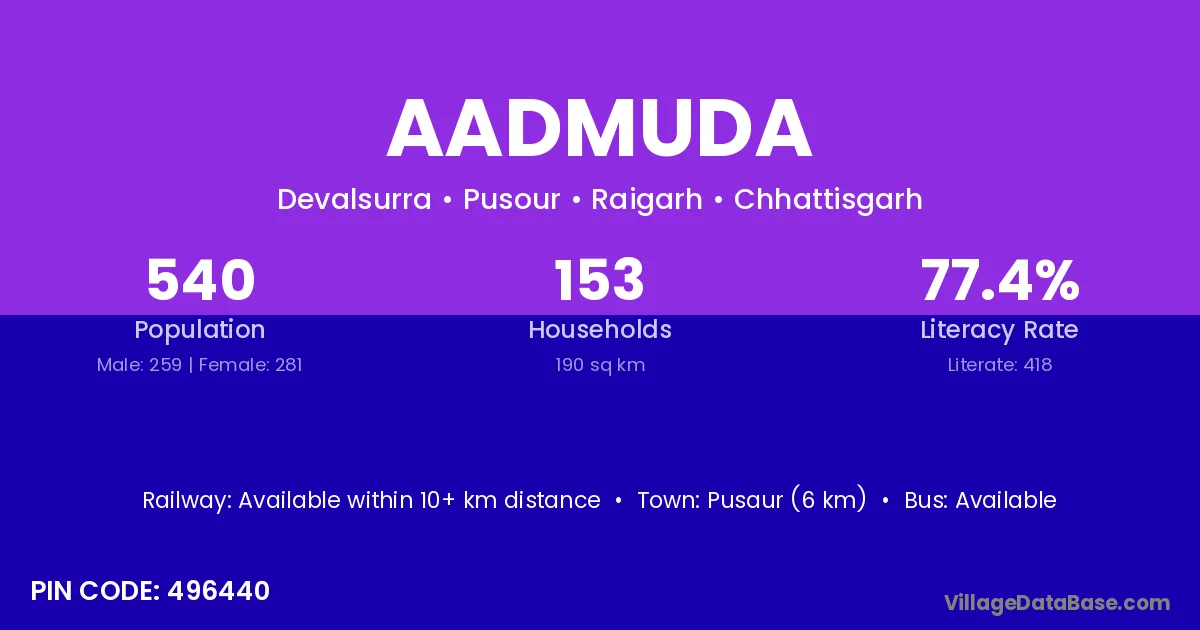 According to Census 2011 information, the village code of Aadmuda village is 496440.