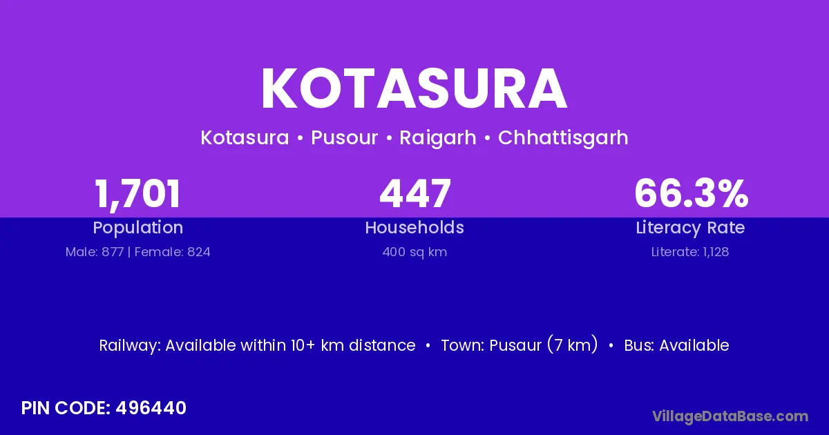 According to Census 2011 information, the village code of Kotasura village is 496440.
