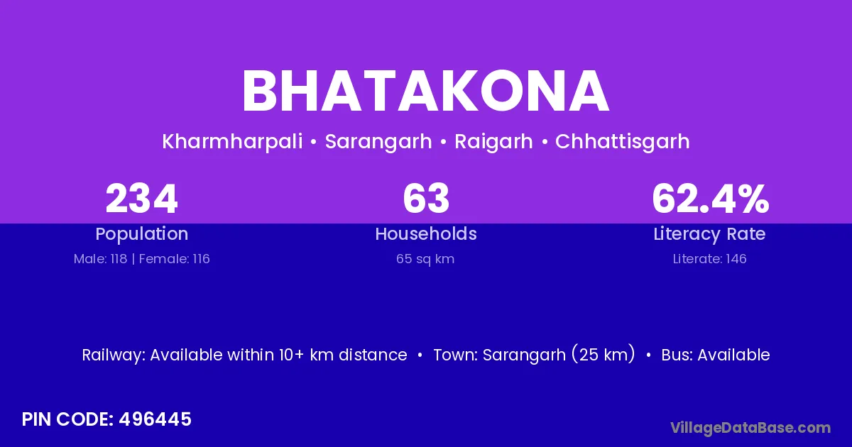 According to Census 2011 information, the village code of Bhatakona village is 496445.