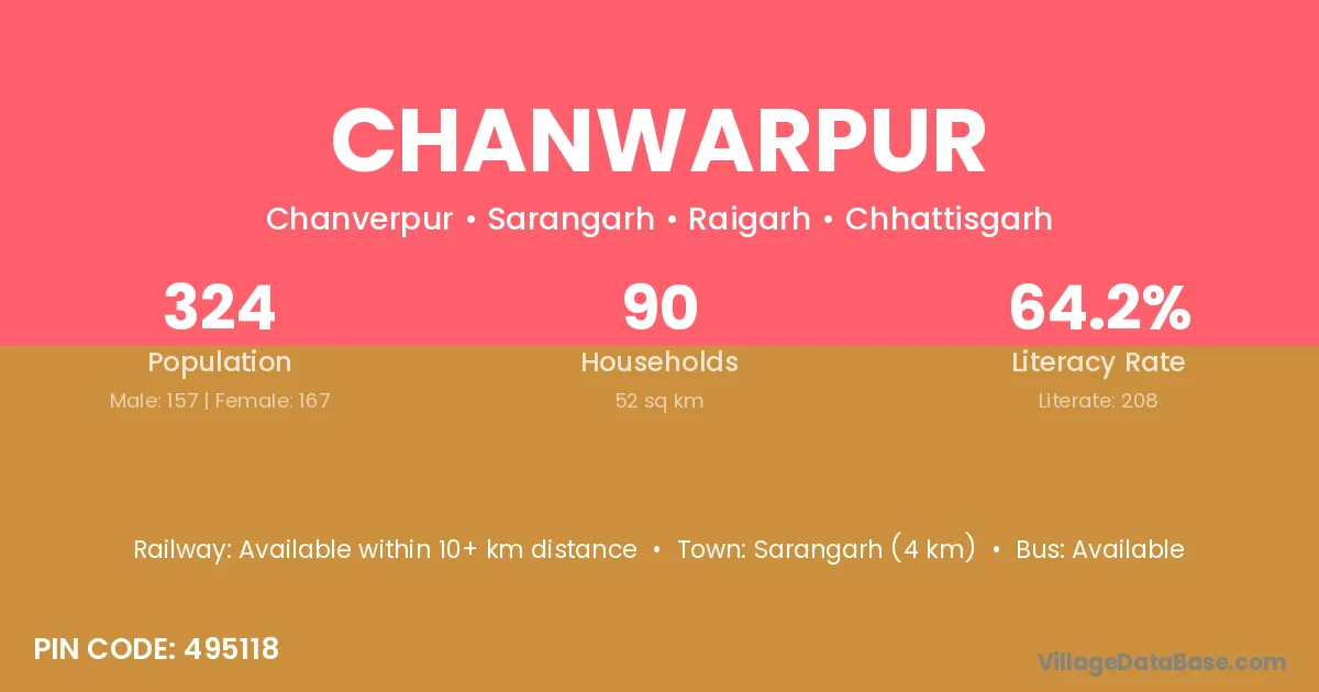Sarangarh (4 km) is the nearest town to Chanwarpur village for major economic activities and is located approximately 4 km away.