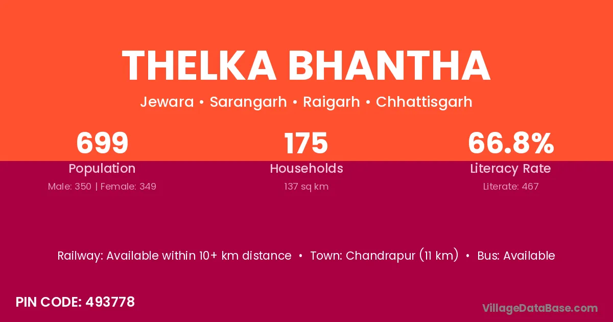 According to Census 2011 information, the village code of Thelka Bhantha village is 493778.