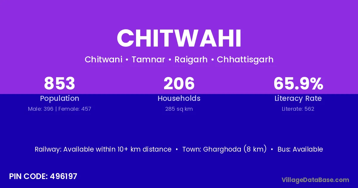 Chitwahi village is located in the Tamnar Tehsil of the Raigarh district in Chhattisgarh .