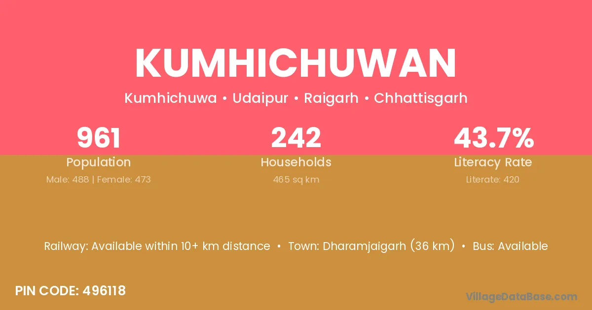 Kumhichuwan village has a total population of 961 people, of which 488 are males and 473 are females.