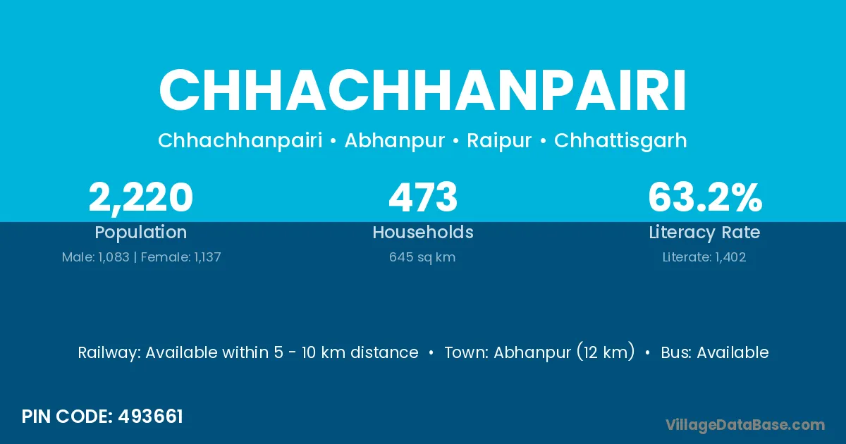 Chhachhanpairi village has a total population of 2,220 people, of which 1,083 are males and 1,137 are females.