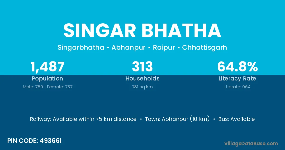 According to Census 2011 information, the village code of Singar Bhatha village is 493661.