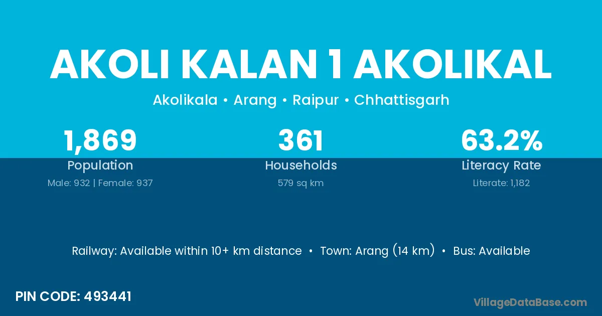 According to Census 2011 information, the village code of Akoli Kalan 1 Akolikal village is 493441.