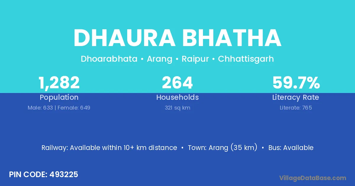 Arang (35 km) is the nearest town to Dhaura Bhatha village for major economic activities and is located approximately 35 km away.