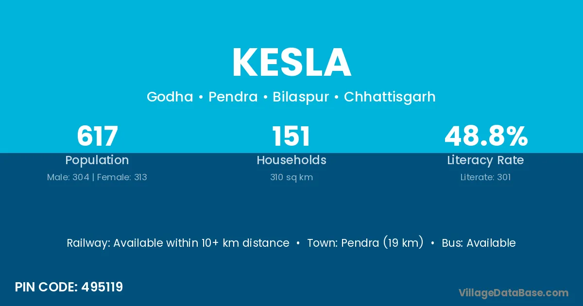 According to Census 2011 information, the village code of Kesla village is 493114.