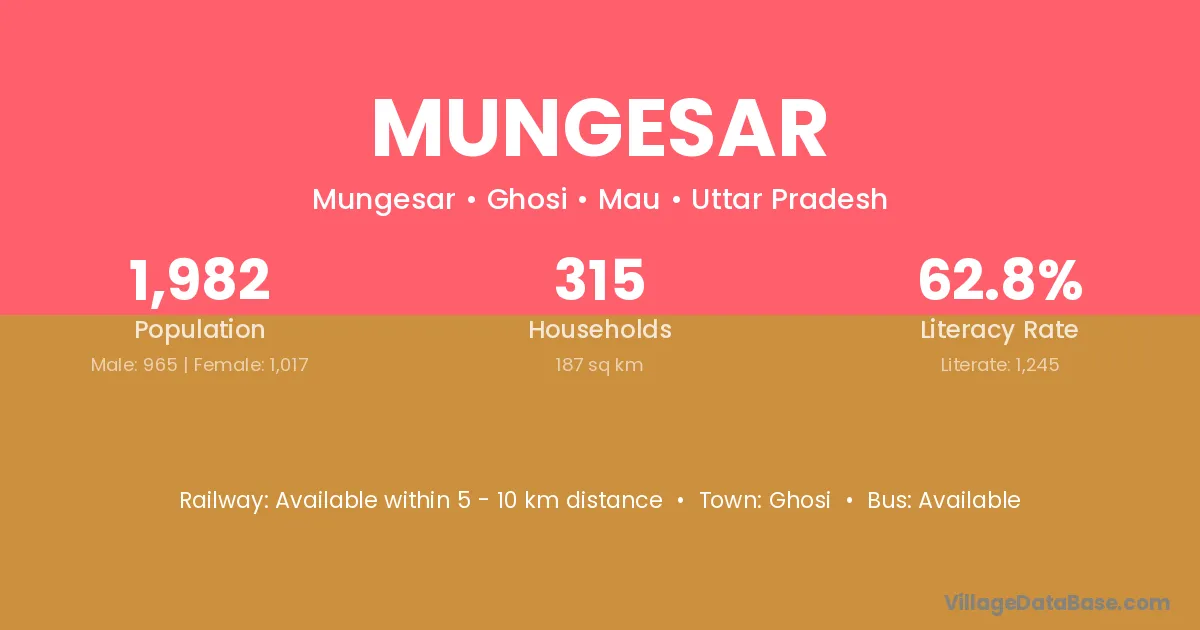 Mungesar village has a total population of 1,991 people, of which 1,023 are males and 968 are females.