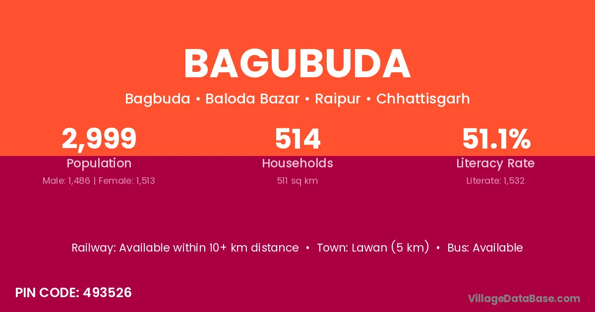 Bagubuda village is located in the Baloda Bazar Tehsil of the Raipur district in Chhattisgarh .