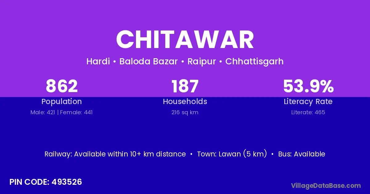Chitawar village has a total population of 862 people, of which 421 are males and 441 are females.