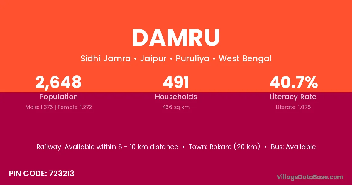 According to Census 2011 information, the village code of Damru village is 493332.
