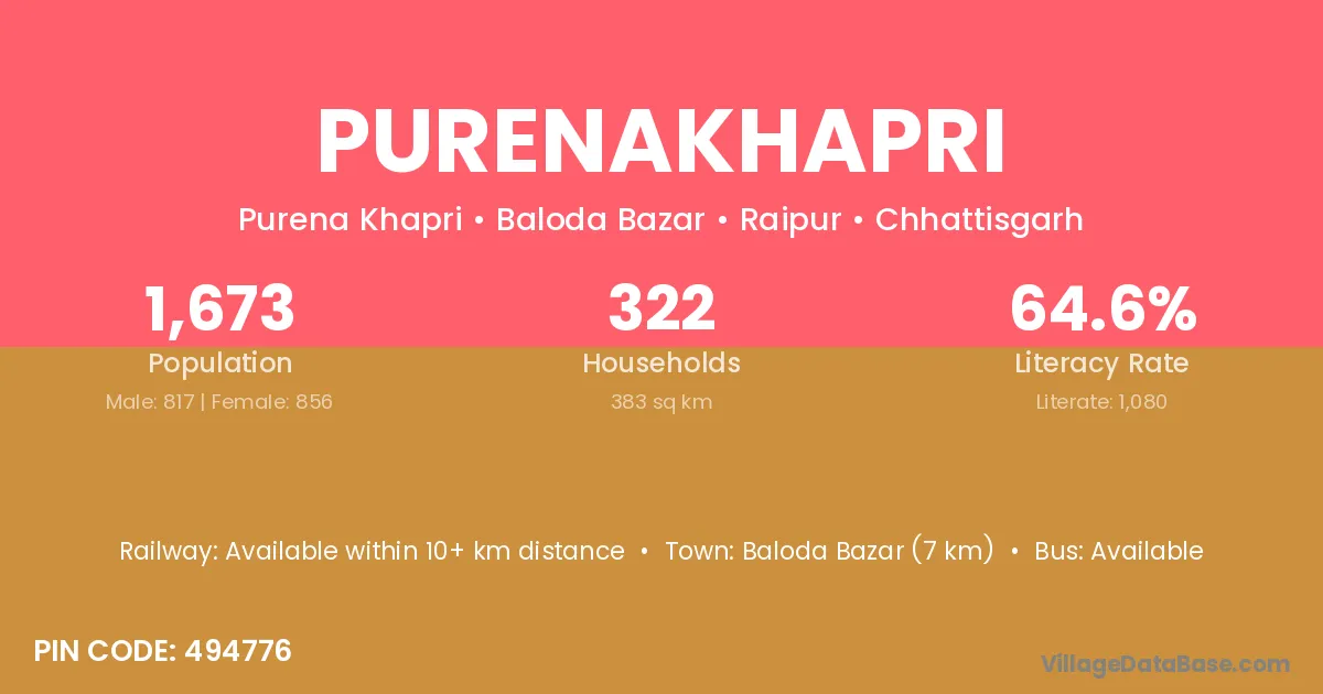 Baloda Bazar (7 km) is the nearest town to Purenakhapri village for major economic activities and is located approximately 7 km away.