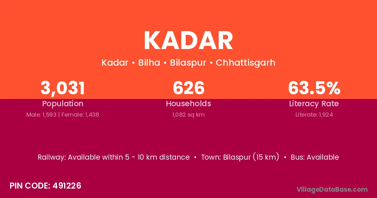 Bhatapara (8 km) is the nearest town to Kadar village for major economic activities and is located approximately 8 km away.