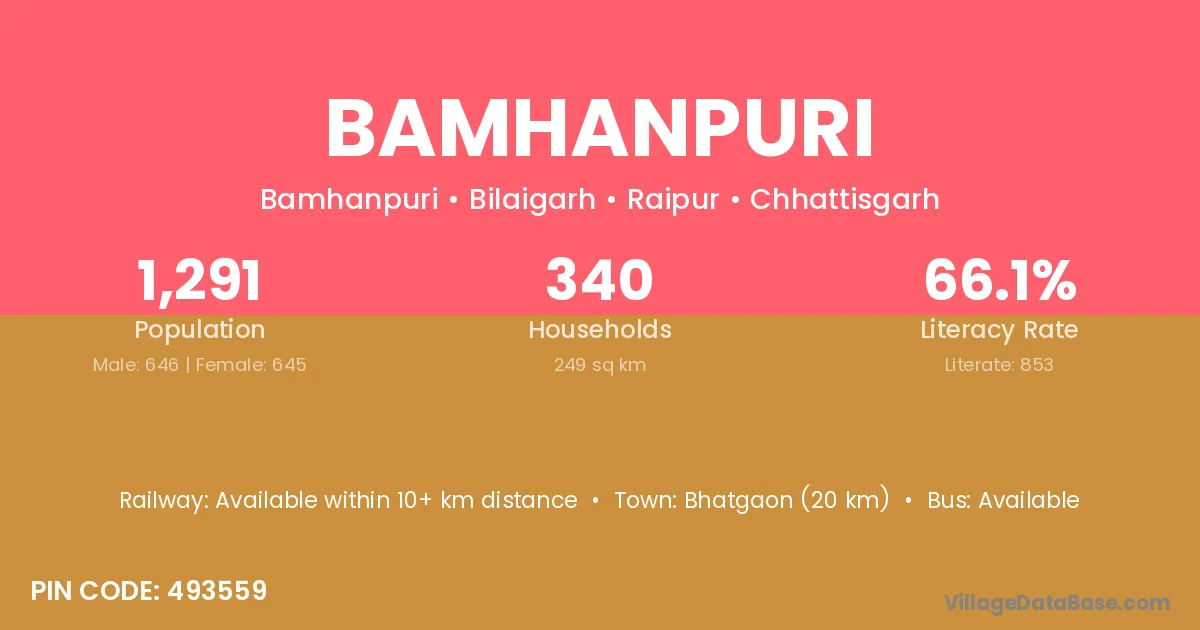 Bamhanpuri village has a total population of 1,291 people, of which 646 are males and 645 are females.