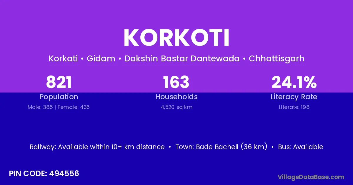 According to Census 2011 information, the village code of Korkoti village is 495689.