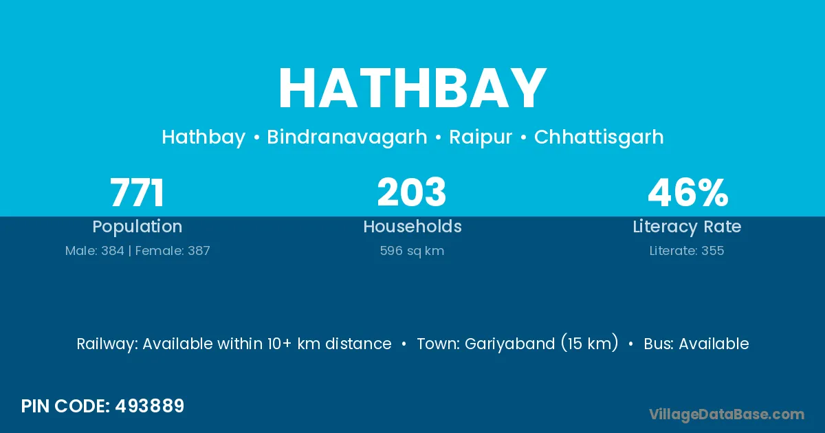 Gariyaband (15 km) is the nearest town to Hathbay village for major economic activities and is located approximately 15 km away.