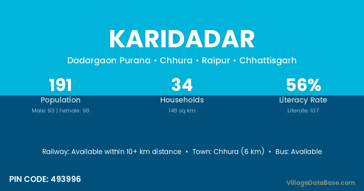 Chhura (6 km) is the nearest town to Karidadar village for major economic activities and is located approximately 6 km away.