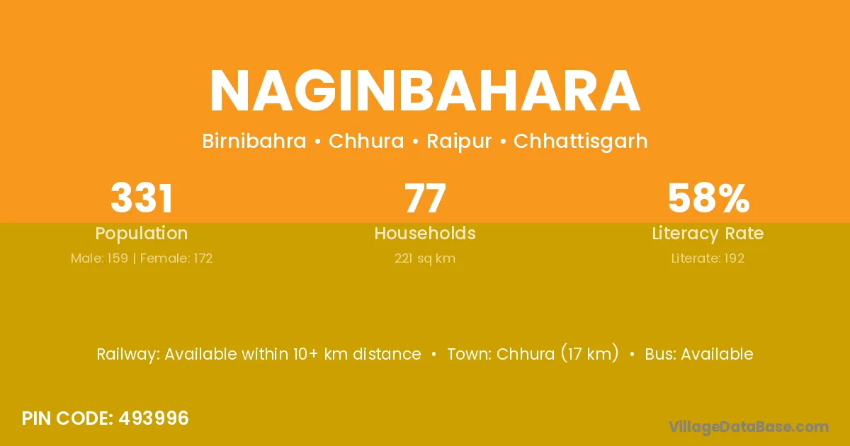 Chhura (17 km) is the nearest town to Naginbahara village for major economic activities and is located approximately 17 km away.