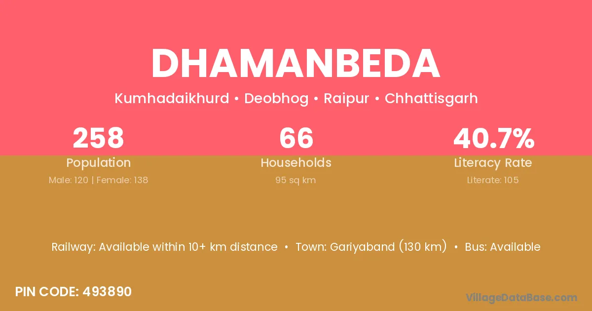 According to Census 2011 information, the village code of Dhamanbeda village is 493890.