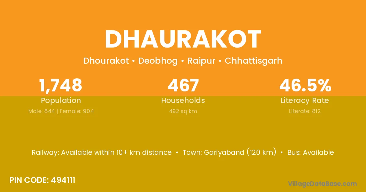 Gariyaband (120 km) is the nearest town to Dhaurakot village for major economic activities and is located approximately 120 km away.