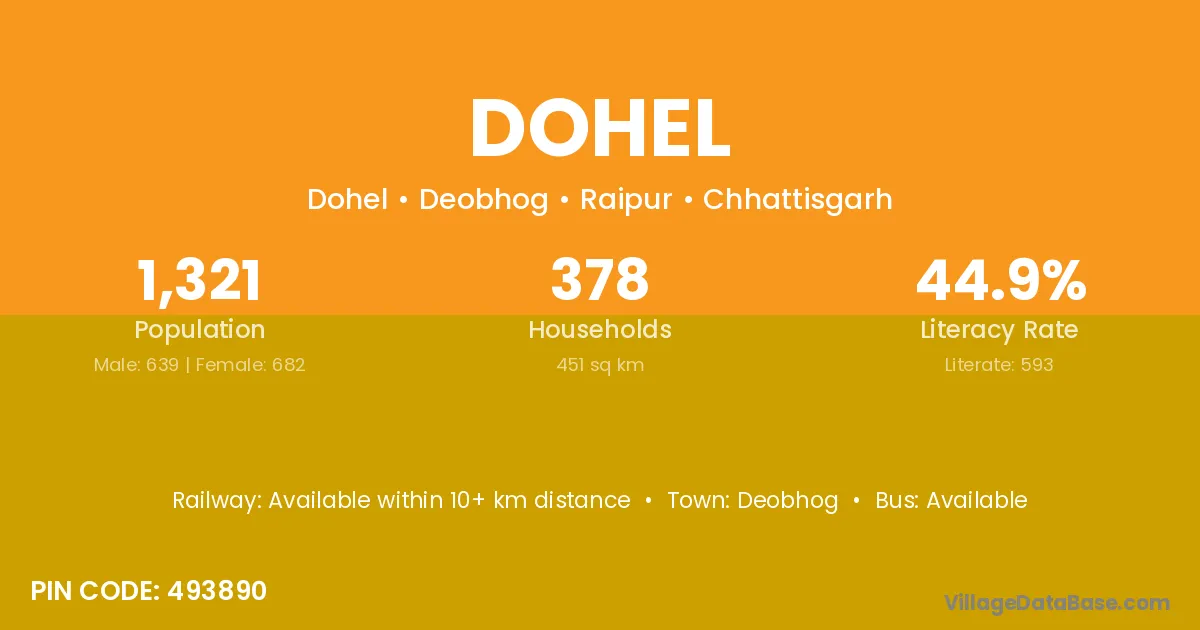 According to Census 2011 information, the village code of Dohel village is 493890.