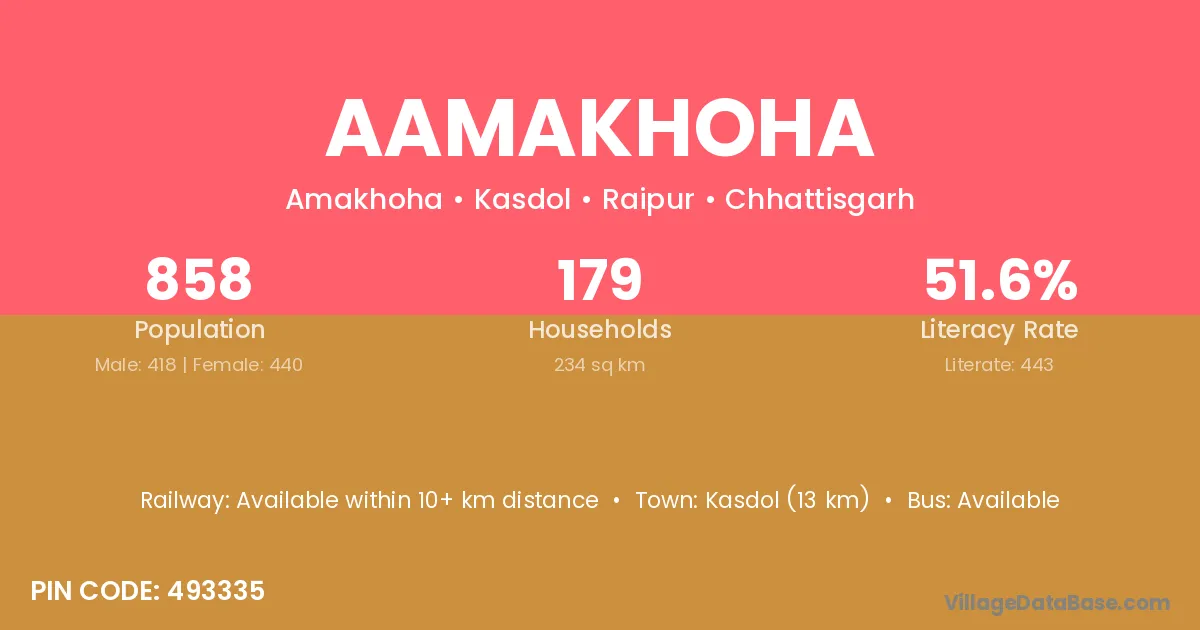 According to Census 2011 information, the village code of Aamakhoha village is 493335.