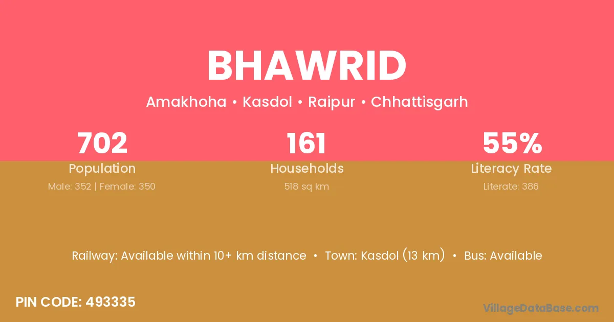 Kasdol (13 km) is the nearest town to Bhawrid village for major economic activities and is located approximately 13 km away.