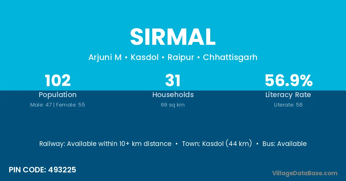 According to Census 2011 information, the village code of Sirmal village is 493225.