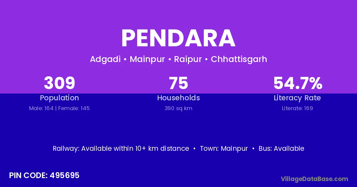 According to Census 2011 information, the village code of Pendara village is 495695.
