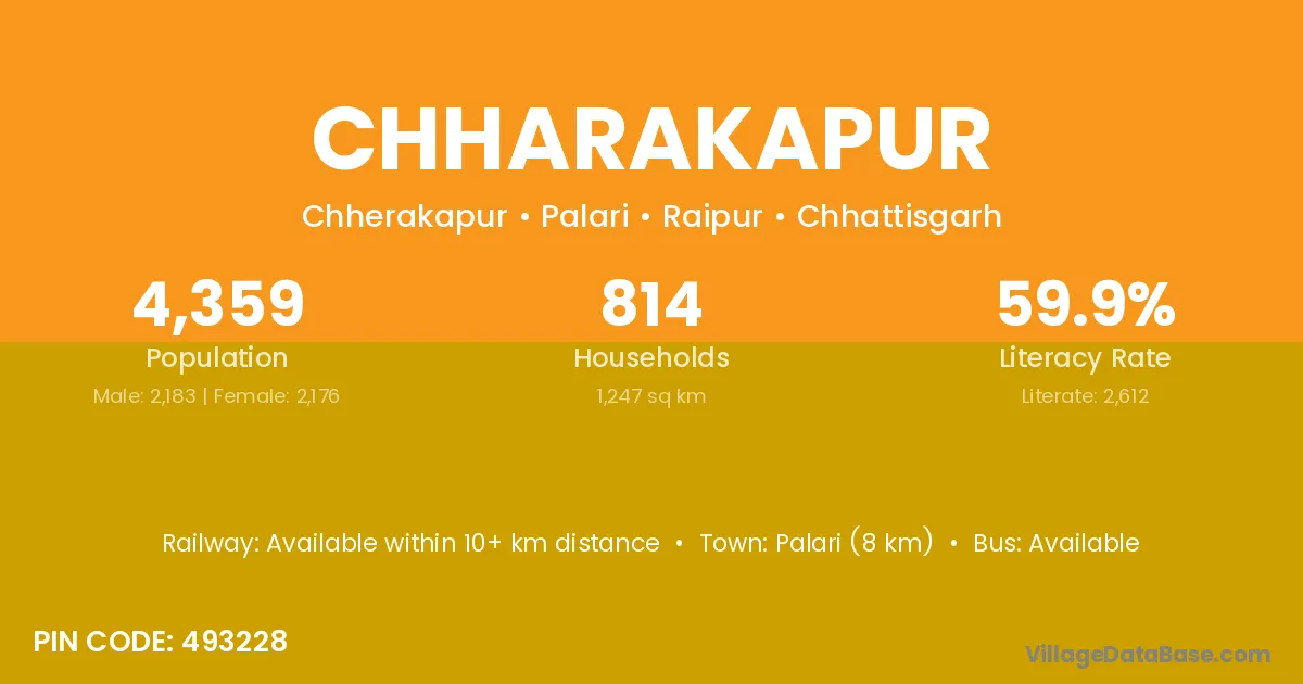 Chharakapur village has a total population of 4,359 people, of which 2,183 are males and 2,176 are females.