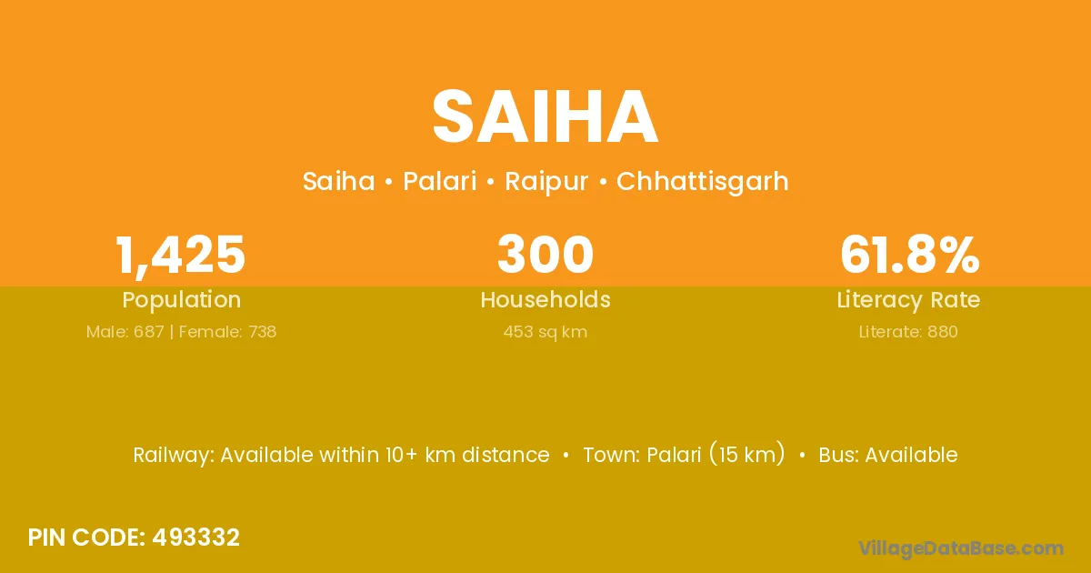 According to Census 2011 information, the village code of Saiha village is 493332.
