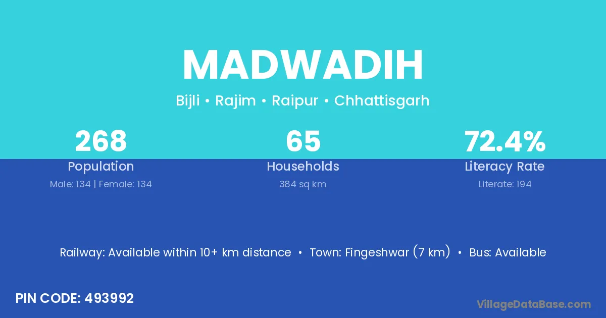 Fingeshwar (7 km) is the nearest town to Madwadih village for major economic activities and is located approximately 7 km away.