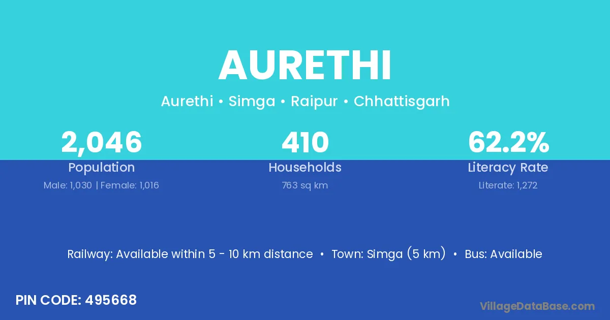 Simga (5 km) is the nearest town to Aurethi village for major economic activities and is located approximately 5 km away.