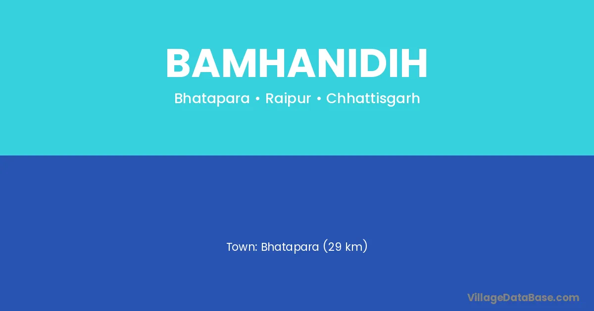 Bhatapara (14 km) is the nearest town to Bamhanidih village for major economic activities and is located approximately 14 km away.