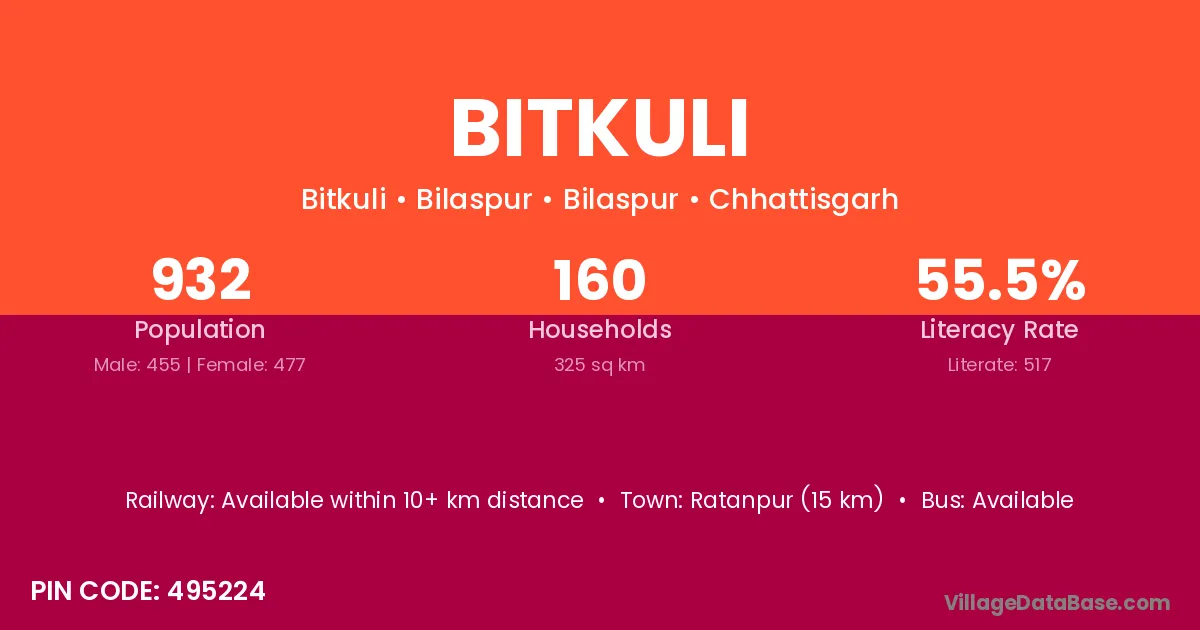 According to Census 2011 information, the village code of Bitkuli village is 493113.