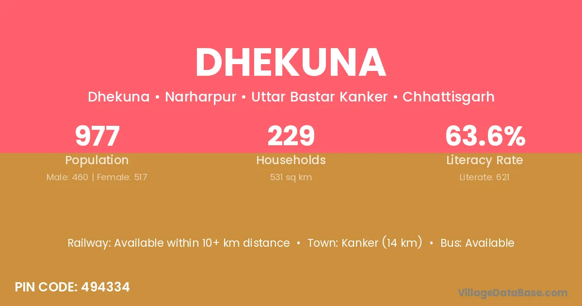 Bhatapara (20 km) is the nearest town to Dhekuna village for major economic activities and is located approximately 20 km away.