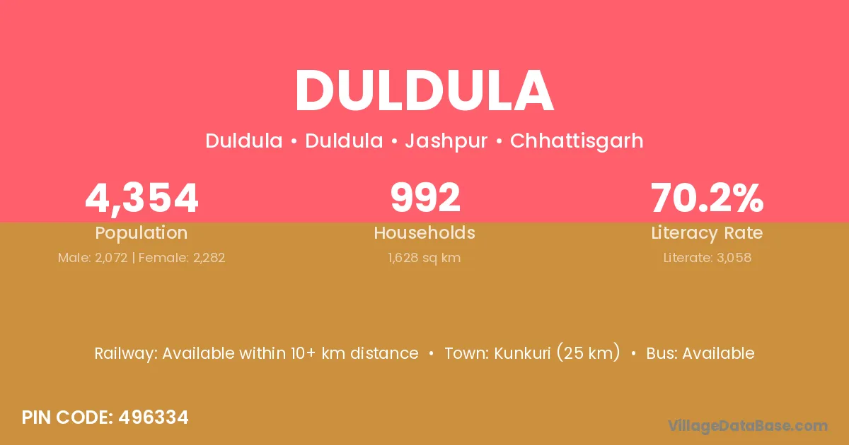 According to Census 2011 information, the village code of Duldula village is 493101.