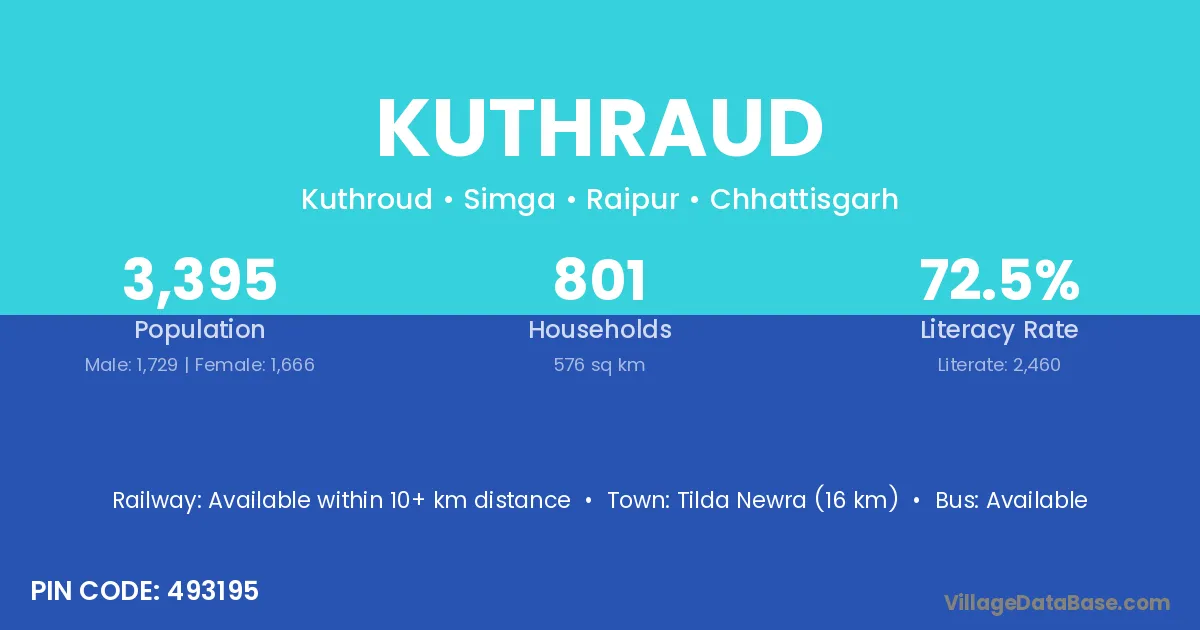 Tilda Newra (16 km) is the nearest town to Kuthraud village for major economic activities and is located approximately 16 km away.