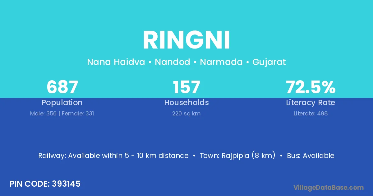 Ringni village has a total population of 1,287 people, of which 651 are males and 636 are females.
