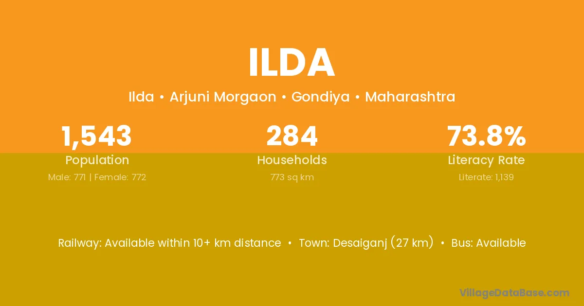 Ilda village has a total population of 1,503 people, of which 765 are males and 738 are females.