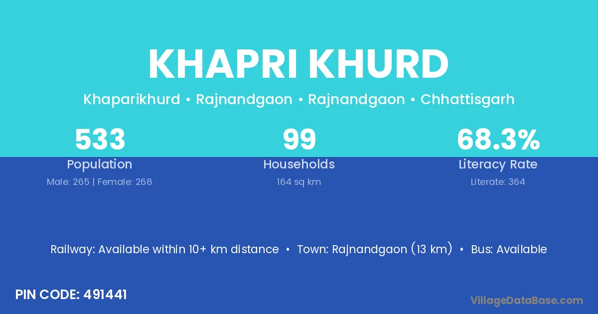 According to Census 2011 information, the village code of Khapri Khurd village is 493114.